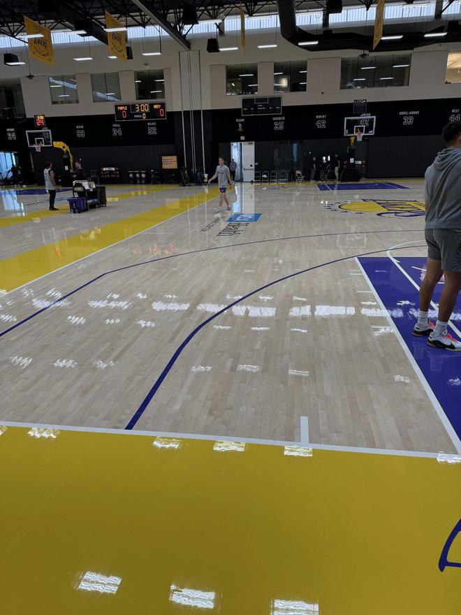 今天,湖人主帅雷迪克澄清这条线是出于防守目的设置的 “变向防守参考线”。该线的作用是明确湖人队在防守中需要执行 “切分换防”(防守球员在遭遇对手掩护或进攻变化时按预设区域切分防守责任并完成换防) 的区域范围。